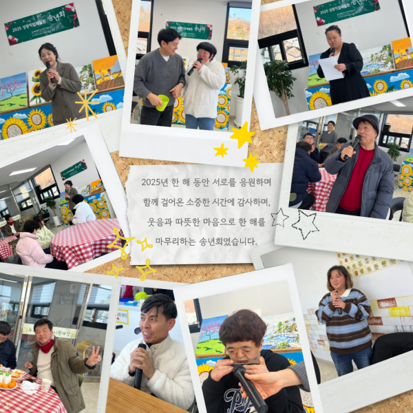 2025/12/17 2025년 성광직업재활원 송년회 페이지 정보 작성자최고관리자 댓글 0건 조회 158회 작성일 26-01-02 14:54 본문 - 내 용 : 2025년 송년회(감사나눔 및 간식지급)- 일 시 : 2025년 12월 17일 수요일 - 장 소 : 성광직업재활원 분원 목록 답변 이전글2026/1/2 2026년 시무식 26.01.02 다음글2025/11/18 이용인 산책프로그램 25.11.24 댓글목록 댓글목록 등록된 댓글이 없습니다.